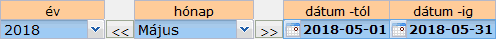A dátum időszak választó arra szolgál, hogy kijelöljük az aktuális időszakot, amelynek az adatait láthatjuk illetve szerkeszthetjük és amelyre az összegzéseket képezzük.