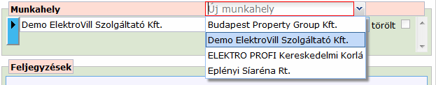 A jobb oldalon a Feljegyzések beviteli mező fölött jelenik meg a Munkahely. Munkahelye csak személy típusú partnernek van, cégnek nincs.